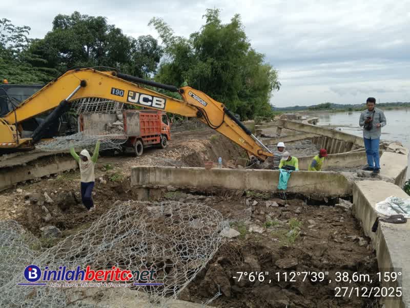 Bojonegoro, inilah berita – Pemerintah Kabupaten Bojonegoro melalui Dinas Pekerjaan Umum Sumber Daya Air (PU SDA) bersama kontraktor pelaksana menegaskan bahwa penanganan kerusakan proyek pelindung tebing Sungai Bengawan Solo di Desa Lebaksari, Kecamatan Baureno, Kabupaten Bojonegoro, tetap berjalan sesuai prosedur teknis dan kontrak yang berlaku.