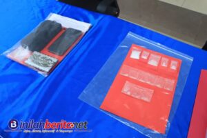 Dalam penggerebekan tersebut, petugas berhasil menyita barang bukti berupa 14 paket sabu dengan berat total sekitar 13,26 gram, alat hisap (bong), timbangan elektrik, plastik klip, sejumlah handphone, serta uang tunai hasil transaksi sebesar Rp600 ribu.